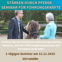 Trainieren Sie Ihre Führungsqualitäten oder Ihr Selbstmanagement und Ihre Resilienz durch die Interaktion mit Pferden. Erkennen Sie Ihre Stärken, das Geheimnis Ihres Erfolges und wirksame Strategien für einen gesunden und erfüllenden Berufsalltag.